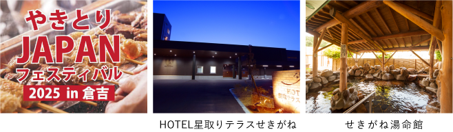 9月27日(土) - 28日(日)は「やきとりJAPANフェスティバル」会場もSPスタンプ設置場所となります。 「やきとりJAPANフェスティバル」会場のスタンプを獲得された方は、抽選で 「HOTEL星取りテラスせきがねペア宿泊券」または「せきがね湯命館入浴優待券」が当たる!